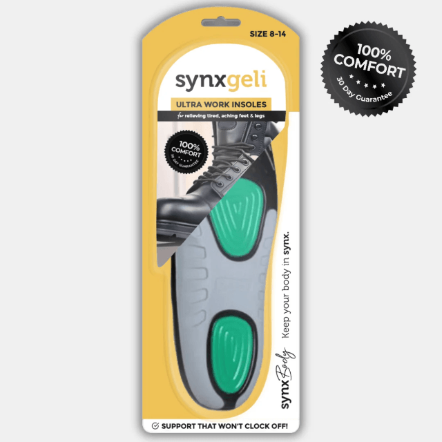 For busy professionals or anyone spending hours on their feet, Synxgeli Workplace Insoles provide advanced comfort and protection. These gel-based insoles are ideal for reducing fatigue and pressure in high-impact zones, making them a perfect fit for demanding work environments. Their advantages include: